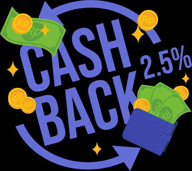 Dapatkan CASHBACK 2,5% untuk tiap transaksi kamu berupa poin, dan bisa kamu gunakan untuk transaksi berikutnya.